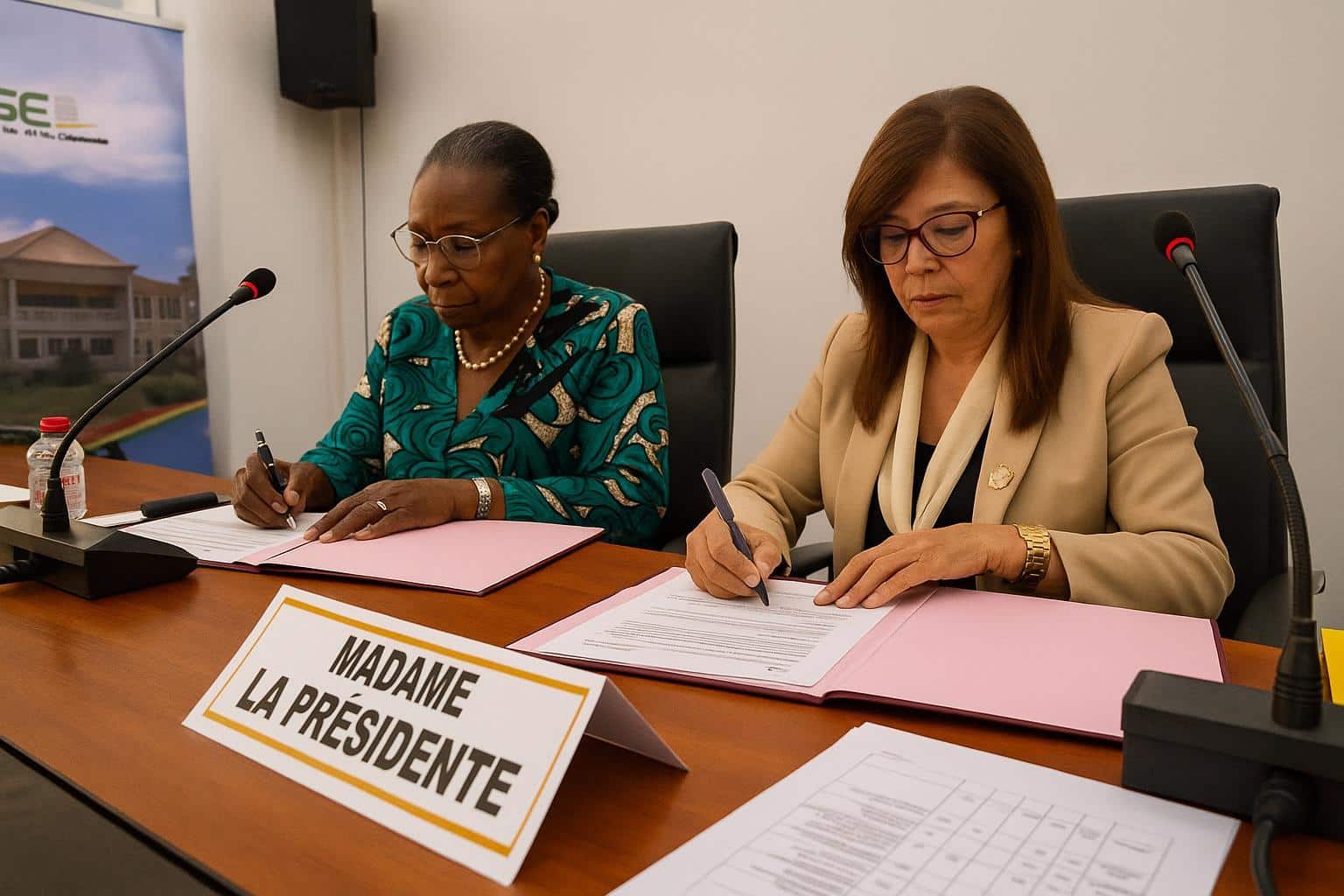 The signing ceremony brought together CESE president Emilienne Raoul and IITDA founder Professor Fatima Arib, two figures already acquainted through the International Days on Macroeconomics and Finance in Dakhla. Their renewed contact underlined a shared conviction that sustainable development must emerge from rigorous dialogue among institutions, territories and citizens.